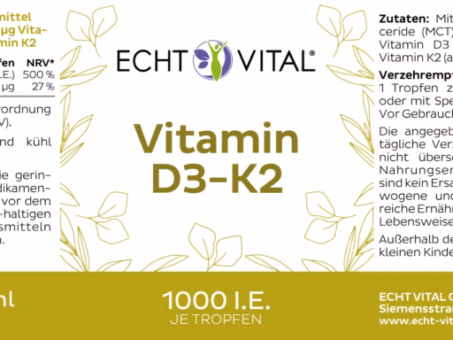 • Vitamin K2 (MK-7): Trägt zur normalen Blutgerinnung bei und unterstützt die Knochengesundheit.• MCT-Öl: Ein leicht verdauliches Trägeröl, das die Aufnahme der Vitamine verbessert und zusätzliche Energie liefert.